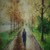 An oil painting of a lady walking in the park after the rain